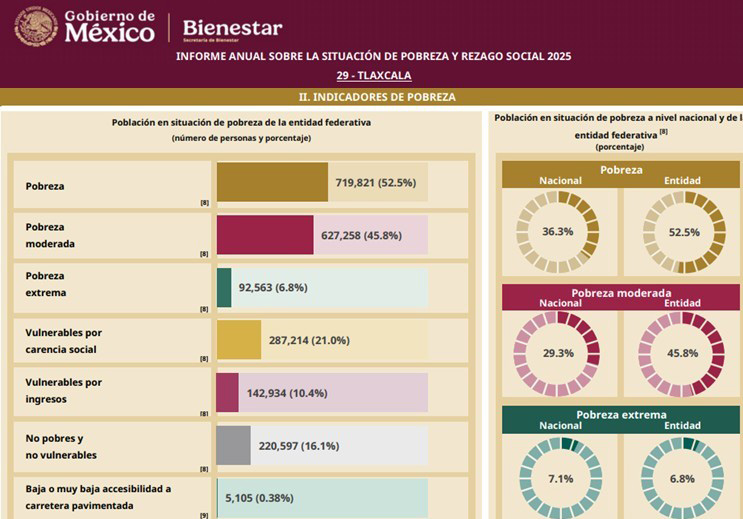 La pobreza en Tlaxcala no es algo pasajero, sino una condición estructural que afecta a todos los diagnósticos del gobierno. En 2014, casi 59 por ciento de la población vive en pobreza multidimensional, y tras la pandemia en 2020, esa cifra aumenta a 59.3 por ciento con un alarmante repunte de 211 por ciento en pobreza extrema.